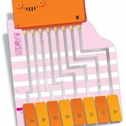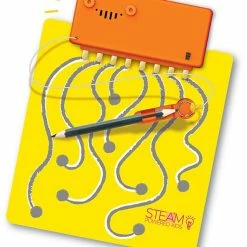 It’s a science experiment, a technology lesson, and an art project….all in one box! Use the included conductive tape to construct a pencil piano, a giant floor piano, or a piano using potatoes and other fruits that conduct electricity. Circuit box requires 3 AAA batteries (not included) and measures 5.25″ wide. Some household materials (aluminum foil, forks, potato) required but not included. For ages 5Y+.