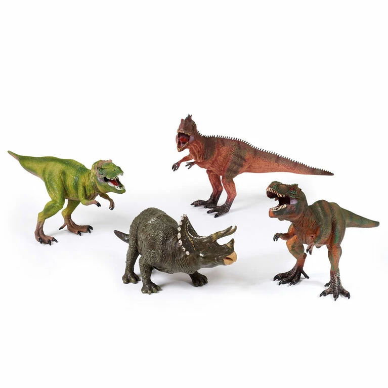 R Exclusive, only available at Toys R Us Canada. Get your little one to recreate their favourite scenes from their top dinosaur films with these Awesome Animals Large Dinosaur figurines. Have the two different colourways of T-Rex fight one another in an epic battle of strength, or see how the Nano Tyrannus fairs against the Triceratops’ mighty horns. With 4 large figurines to collect with an approximate height of 26cm / 10 inches, let your child’s imagination create wonderful Prehistoric games. Suitable for age 3+