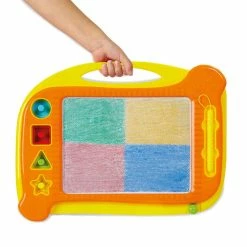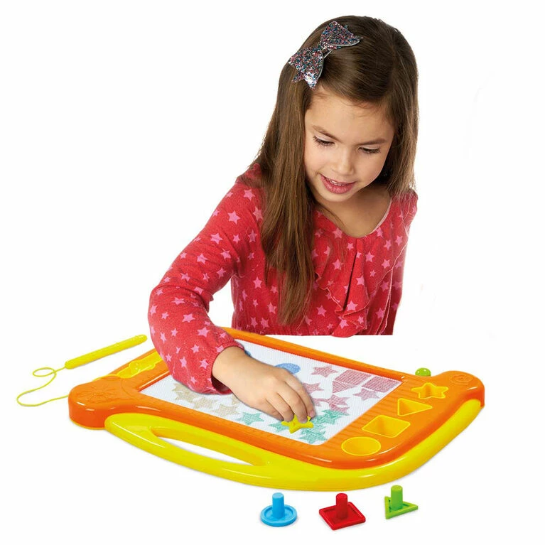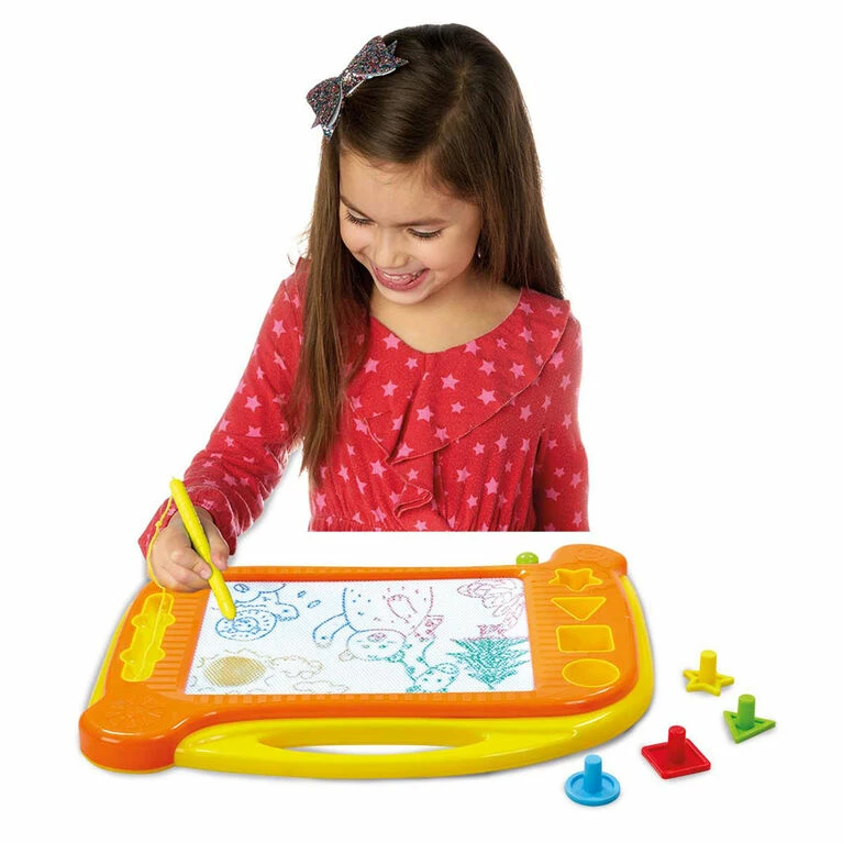 This portable Drawing Board promises plenty of fun! Kids can use the attached magnetic pen to begin doodling or use the included shapes to make amazingly colourful masterpieces.