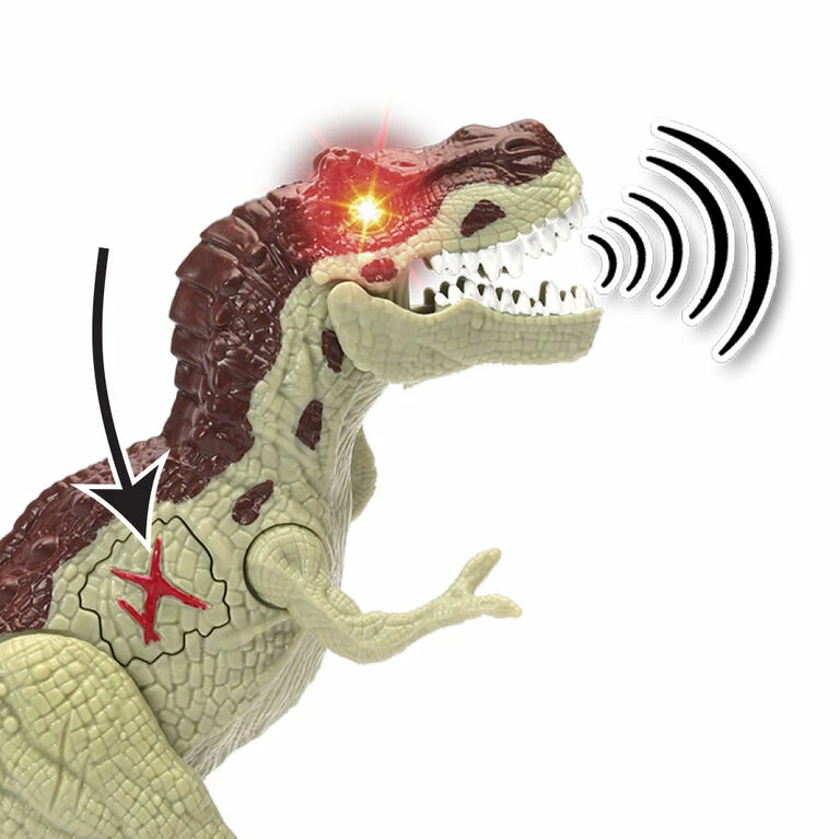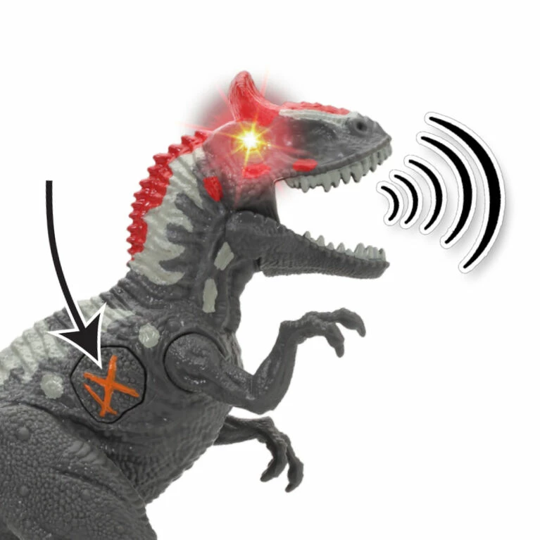 The jungle is overrun with dinosaurs on the loose, and it’s up to you and your team to retrieve them! This trio of terrible titans is sure to give you trouble. Choose from T-Rex, Cryolophosaurus, or Carnotaurus, each sold separately. The terrifying T-Rex roars and his eyes light up when you push the button. Twist the Cryolophosaurus to light up its intimidating crest and hear it scream. The Carnotaurus is ready to munch – push down on its tail to hear it bellow and see its eyes light up. So, will you capture them, or end up captured yourself?!
