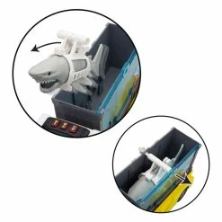Whoa there, what’s that flailing in the tank?! Could it be a mighty, massive, great white shark?! You bet it is. Can you transport it safely to the Wild Quest aquarium? It won’t be easy. Despite being restrained, this shark is doing all it can to break free! As you careen along, the truck rattles and rocks. Press the buttons to activate driving, lights and sounds features. Can also be pushed for free-wheeling play.