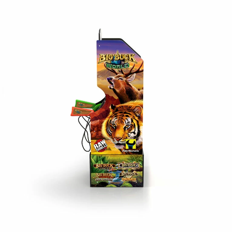 This cabinet hits the mark with the included games — Big Buck Hunter Proâ„¢, Big Buck Safariâ„¢, Big Buck Hunter Pro Open Seasonâ„¢, and Big Buck Safari Outbackâ„¢ — and with its two “Light Gun” Rifles and Matching Riser.