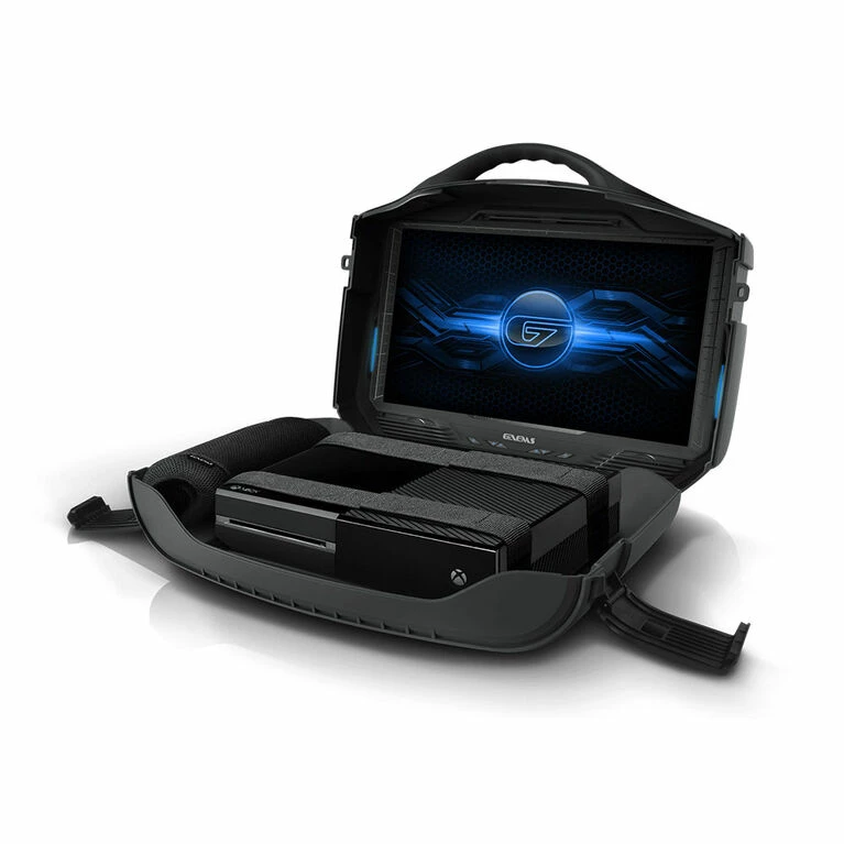 The GAEMS Vanguard allows you to transform any space into your own Personal Gaming Environment. No matter where you are, all you have to do is pop it open, plug it in and play. Immerse yourself in every detail with the Vanguards non-reflective 19″ 720p (1080p scaled) El-LED display. Unleash the power of its metal-coned chambered speakers, or make your experience a little more personal by utilizing its dual output jacks. The Vanguard takes gaming to a whole new level of convenience with a remote control and a PGE Sling for easy carrying. Its rugged armored shell protects your favorite console while in transit, even if that simply means going from room to room. And its TSA friendly, so you can throw it in your carry-on. Looks like layovers just got awesome.