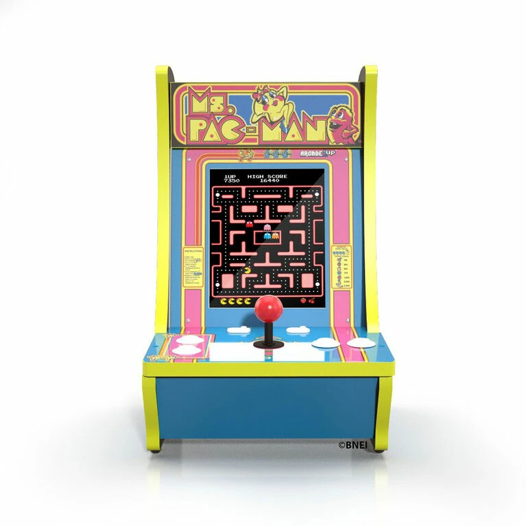 Step right up to the counter and play away. Arcade1Up’s next generation of counter-cades is here…in a new home arcade form factor! Take it right out of the box, plug it in and start gobbling up pellets. Perfect for home bars, offices, dorm rooms, or anywhere else you’d want to squeeze in some retro gaming, Arcade1Up’s counter-cades are compact in size, but always an enormous amount of fun. Yep, here she is. Possibly a diva but most definitely an icon, Ms.PAC-MAN™! Guide her way through those mazes while evading BLINKY, PINKY, INKY, and SUE. In the mood to switch it up? You’ve also got the classics PAC-MAN™PLUS, GALAGA™, and DIG DUG™ll, all inside! Featuring authentic gameplay with real feel controls, Arcade1Up’s counter-cades are the way to bring that classic arcade experience home, even if you’re short on space!