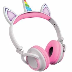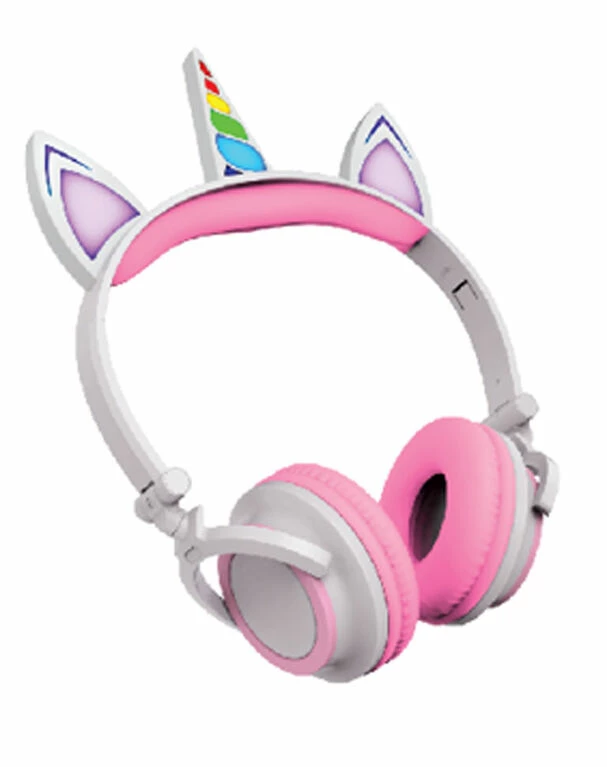 These Unicorn headphones by Art+Sound are loaded with magical fun! With their embedded LED lights ( on/off toggle ) you can listen and have fun all at once. Not only do they provide a smooth sound to enhance your listening experience, but, they are comfortable and fashionable as well. The cushioned ear cups rest comfortably on your ears, and your little ones will have a hard taking them off! They are wired with a 3.5mm audio jack and are fully adjustable as well, so you can get just the right fit.