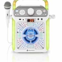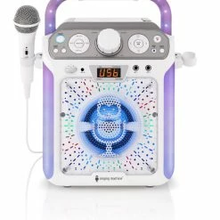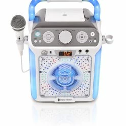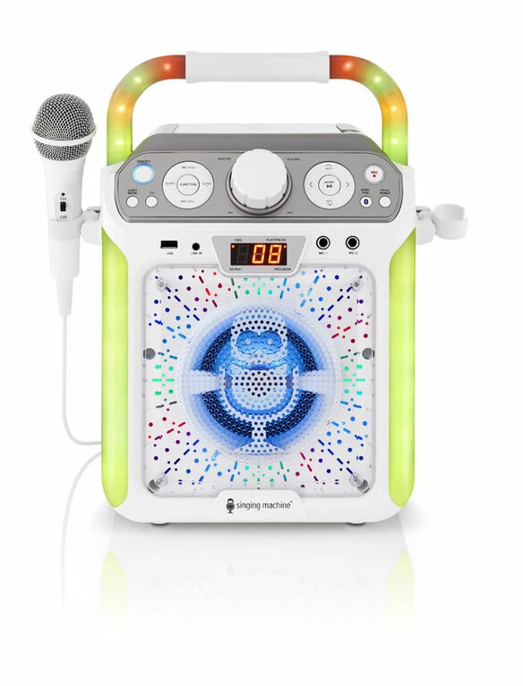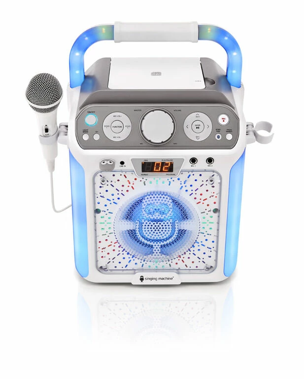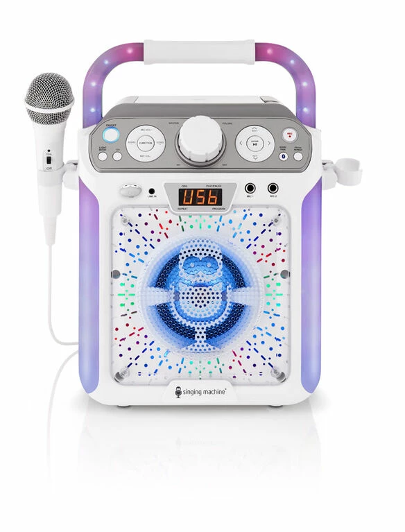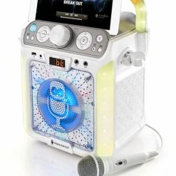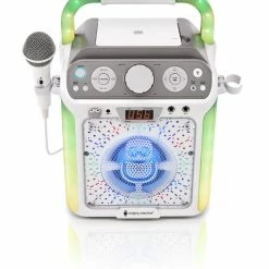 The Groove comes packed with awesome features for you to create fun-lasting singable moments. The Groove lets you play your music CDs and CDGs or stream audio via your Bluetooth compatible devices. Follow the karaoke lyrics on your TV screen via the included RCA cables. Record your voice performances to the integrated USB jack. Built with over 40 multi-colored LED lights on front grill, sides, and handle that synchronize to the music plus speakers in wood cabinets for a crispy sound, the Groove is your party in the box! Plays music CDs & Karaoke discs (CD+Gs) Aux-in to connect to other devices Multi colored LED lights synchronize to the music Share the lyrics on a big screen TV via RCA cables Bonus 5 Free songs downloads!