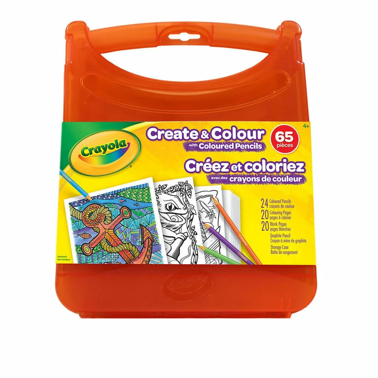 Colour and draw on the go with Crayola’s Create and Colour Coloured Pencil Kit. Perfect for art and classroom projects, this colourful collection of Crayola’s famously durable and versatile coloured pencils fit neatly in the portable storage case so your art supplies are ready when you’re inspired to create art. Includes over 65 pieces – 24 coloured pencils, 1 graphite pencil, 20 sheets of line art and activities, 20 blank sheets and a sturdy hard-shell storage case. For ages 4 and up.