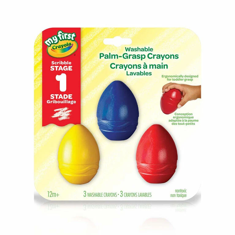 My First Crayola Washable Palm-Grasp Crayons are designed for little scribblers to help them express, create and explore with colour. The ergonimically designed easy-to-grip shape makes them ideal for little hands. Best of all, these bright crayons are washable from skin and clothing!