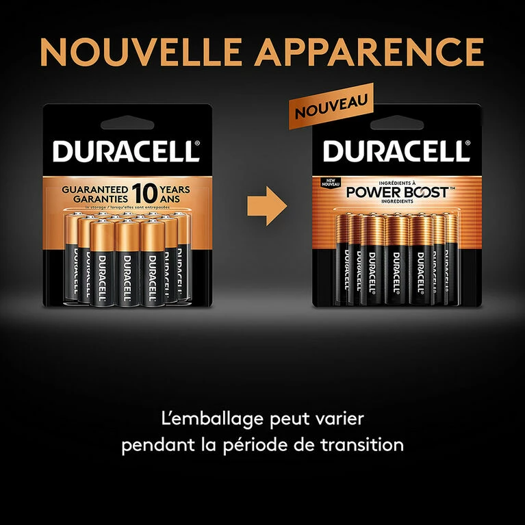 Duracell Coppertop AA (double A) batteries with POWER BOOST Ingredients deliver dependable power to your everyday devices throughout the home, like toys, remote controls, flashlights, calculators, clocks and radios, wireless mice, keyboards, and more. With a guarantee of 12 years in storage, you can rest assured they’ll be ready when you need them. Duracell guarantees these batteries against defects in material and workmanship. From storm season to holiday needs, Duracell is the #1 trusted battery brand for the moments that matter most.Â
