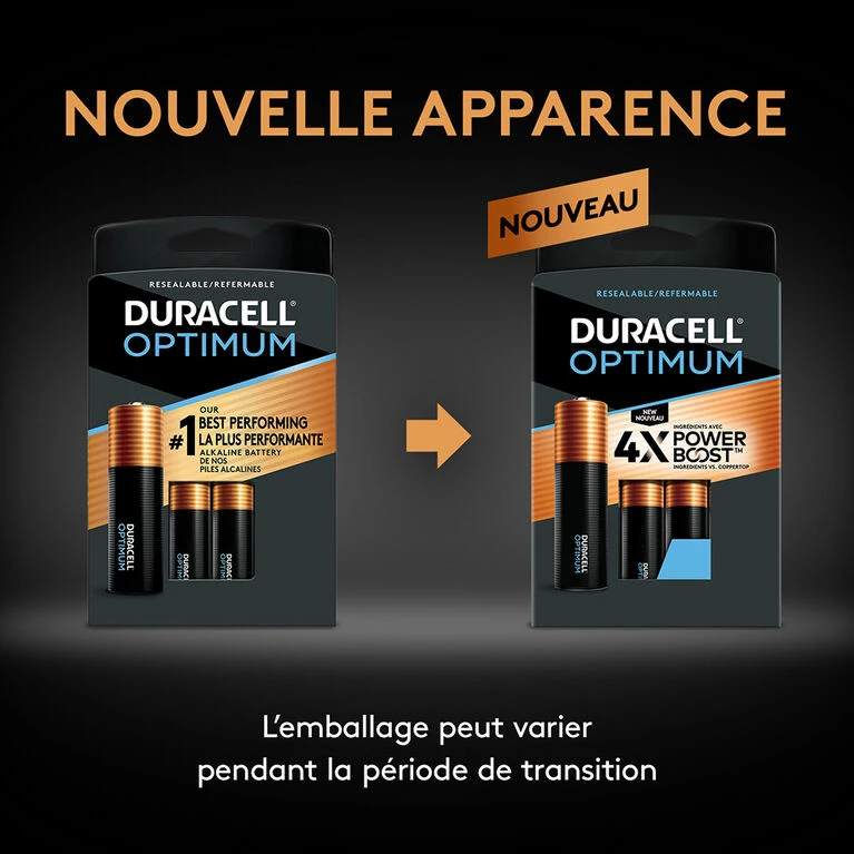 Duracell Optimum AAA batteries, our #1 best performing alkaline batteries, are now formulated with 4X the patented POWER BOOST Ingredients vs Coppertop AAA. Compatible with any AAA battery-operated device, these AAA batteries are packaged in a slider pack with resealable storage tray for a more organized way to store your batteries. Duracell guarantees these batteries against defects in material and workmanship. From storm prep to holiday needs, Duracell is the #1 trusted battery brand for the moments that matter most.