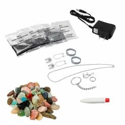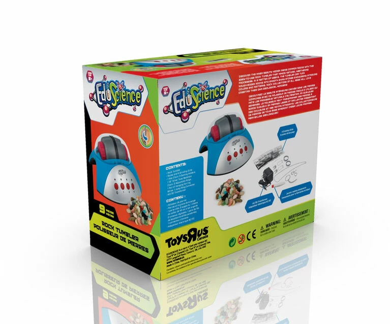 R Exclusive, only available at Toys R Us Canada. A great set for any junior geologist or anybody who wants to learn how crystals are made This enables you use pointed crystal base to create beautiful acicular (needle-shaped) crystals used to make crystal mobiles and crystalline figures. By using gemstone crystal base (alum), you can conduct an experiment making octahedral crystals Includes 68 page science guide for more information; From the Manufacturer. Rock Tumbler, AC Adapter, Rocks, Jewelry Accessories, Key Chain, 3 Setting Holders, 18″ Silver Tone Necklace Chain, 1 Pair Hanging Earring Wires, 1 Jump Ring Connector. Coarse Grinding Powder. Fine Grinding Powder. Polishing Power. Glue.