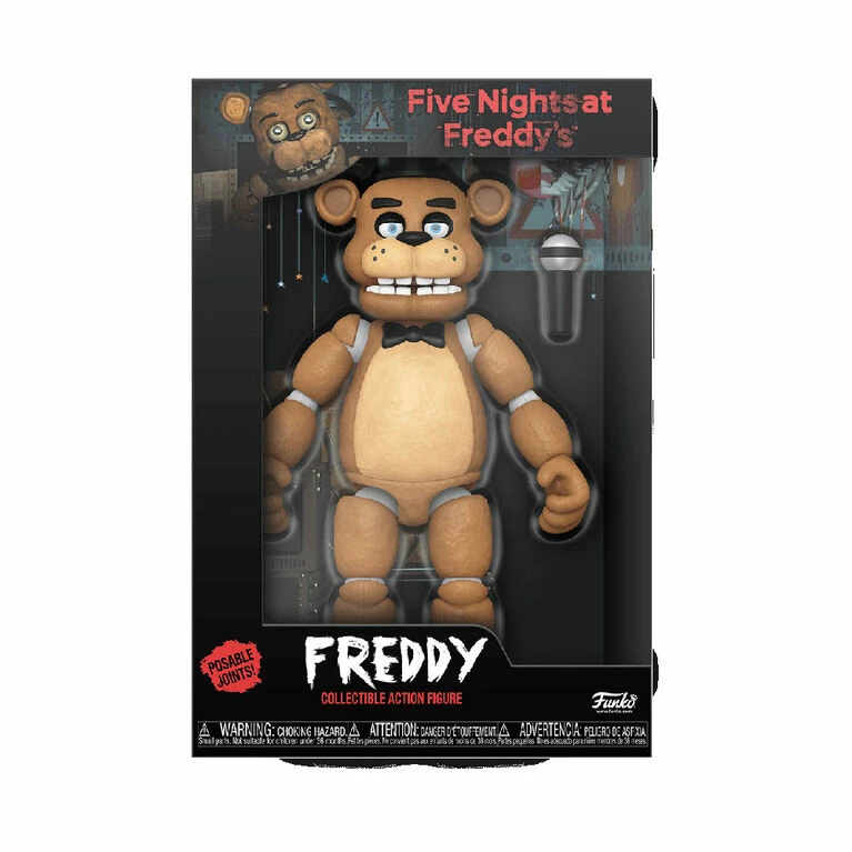 Straight out of popular video game, Five Nights at Freddy’s, Freddy is here in posable form to join your collection! This Five Nights at Freddy’s Freddy Fazbear 13 1/2-Inch Action Figure measures approximately 13 1/2-inches tall. Includes 1x microphone accessory.