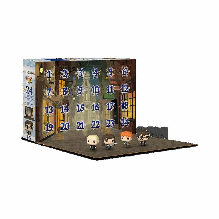 With a flick of his wand, Harry Potter is setting a scene for some holiday fun! The Harry Potter Funko Advent Calendar summons some beloved Wizarding World companions to help you count down to your winter celebrations. Open the tiny doors to reveal 24 unique Funko Pocket Pops! featuring Harry and his friends. Place them in front of the packaging’s artwork to create an enchanting scene in Diagon Alley. Who will join in on your holiday adventures? Pocket Pop! collectibles vary in height depending on character. The maximum figure height is approximately 1.87-inches tall.