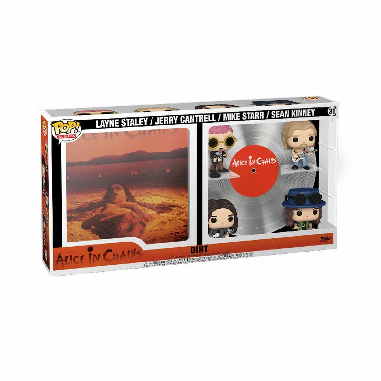 Celebrate 30 years of Alice in Chains’ second studio album Dirt with this Deluxe Pop! Album! Never forget the iconic album or the music of Alice in Chains by collecting this Deluxe Pop! Album Dirt, featuring each of the band members as Pop! figures and the album cover art. Packaged together in a protective hardcase, this Deluxe Pop! Album can be hung on a wall or placed on a shelf next to your music collection. Pop! Layne Staley, Pop! Jerry Cantrell, Pop! Sean Kinney, and Pop! Mike Starr are ready to rock in their legendary stage outfits. Vinyl figures are approximately 4-inches tall. Approximate dimensions of the protective case: 23.5″W x 12.25″H x 3.75″D. Please note: Pop! Deluxe Album does not include a playable vinyl record.