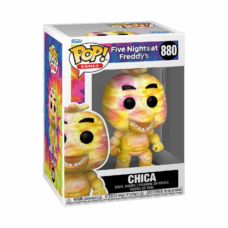 Survive the night at Freddy Fazbear’s Pizza with Five Nights at Freddy’s Pop! Tie-Dye Chica. Catch her before she moves! Vinyl figure is approximately 4-inches tall.