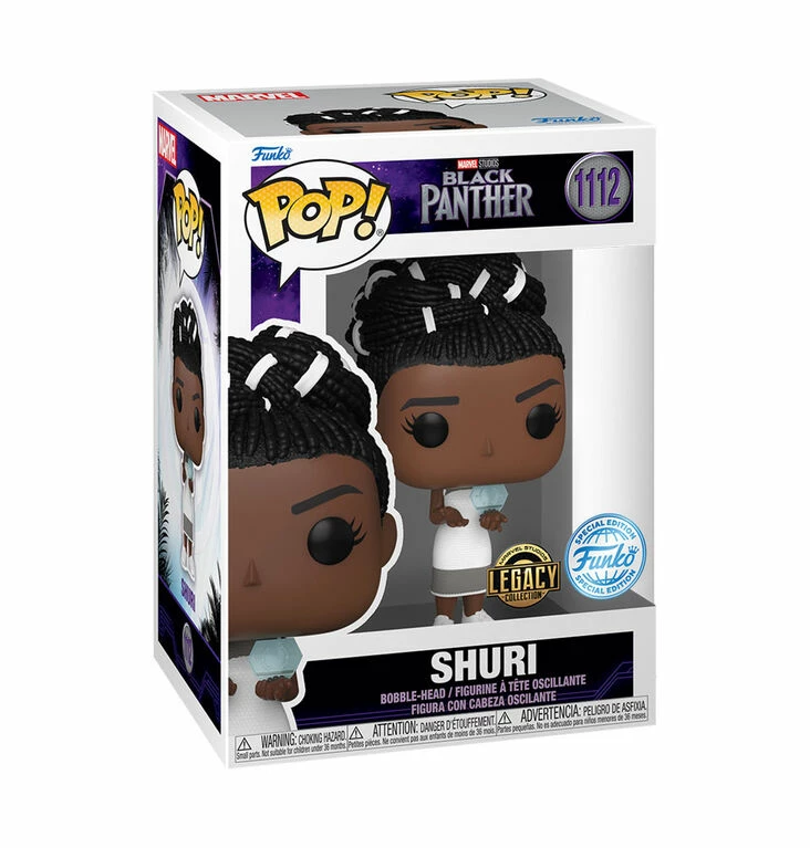 R Exclusive, only available at Toys R Us Canada. Inspire your Marvel collection with one of Wakanda’s fiercest warriors. The exclusive Pop! Shuri uses advanced Wakandan technology to record her research, as seen in Marvel Studios’ Black Panther. Who will this heroine face in your collection? Collect her to complete your Black Panther Legacy set. Vinyl bobblehead is approximately 4.5-inches tall.