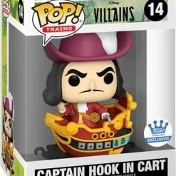 Funko exclusive Pop! Captain Hook stands on the deck, clenching his fist and scowling. Collect Pop! Captain Hook in Cart to lead your exclusive Disney Villains train. Vinyl figure is approximately 5.36-inches tall and 3.5-inches long.
