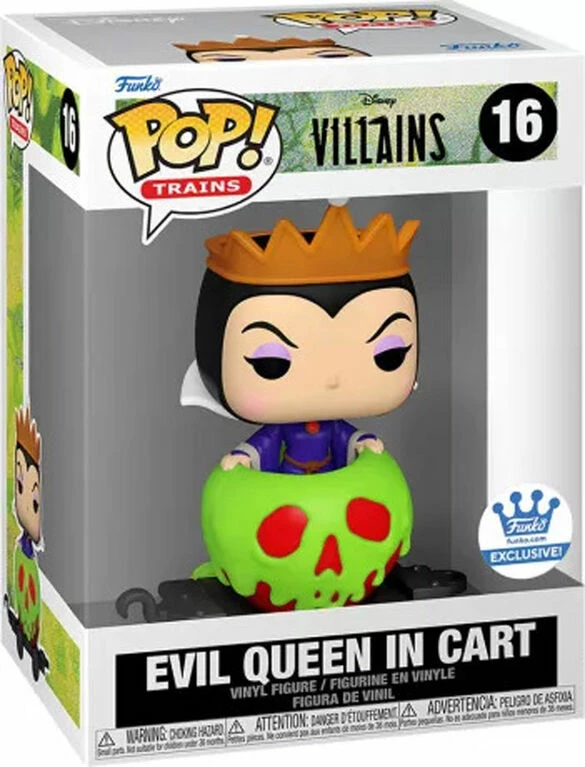 R Exclusive, only available at Toys R Us Canada. Evil Queen will send a sour surprise if she hears that your Disney Villains Train set plans to leave station without her. Collect the iconic villains in their equally memorable train cars and set the track for your Disney collection to become their home station. Funko exclusive Pop! Evil Queen scowls from her poison apple cart, surveying the land with envious distaste. Collect Pop! Evil Queen in Cart to lead your exclusive Disney Villains train. Vinyl figure is approximately 5.46-inches tall and 3.5-inches long.