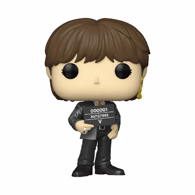 Your music collection may melt at the sight of these Pop! figures for BTS! Pop! V strikes a criminally stunning pose while holding a mugshot sign. Invite this member of BTS to stage a performance in your collection as a Funko Pop! figure! Vinyl figure is approximately 4-inches tall.