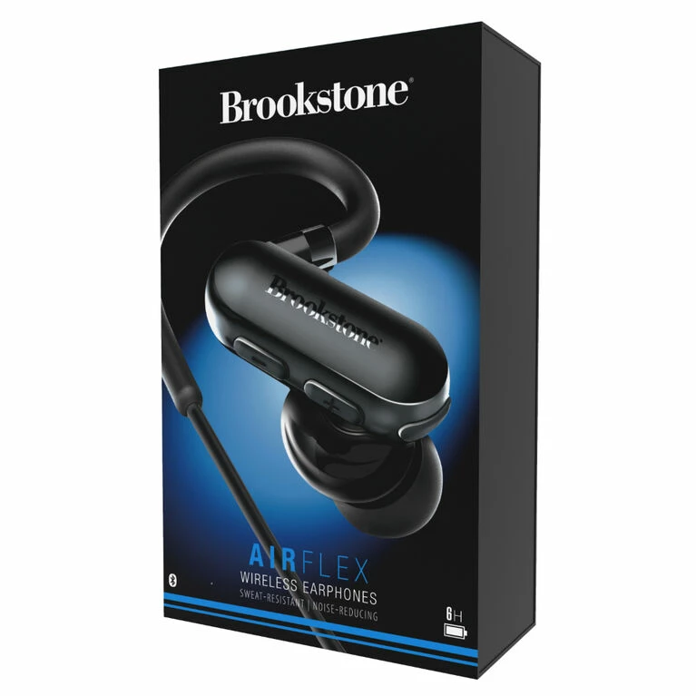 Bring your exercise to life, with the AIRFLEX wireless earphones, by Brookstone. These earbuds will transform your listening experience, by providing ultimate comfort and quality, all in one device. The sweat resistant feature, allows you to listen while excersising, while the hook design, provides security and a snug fit. The cVc 6.0 noise reduction technology helps block out external unwanted sounds, so you can hear the clarity and depth of your music, the way it’s supposed to be enjoyed. The embedded rechargeable battery provides up to 6 hours of listening per a charge, and the embedded mic, enables you to take phone calls conveniently, without having to access your phone. Adjust the volume by using the on-device toggle, so you can get just the right output.