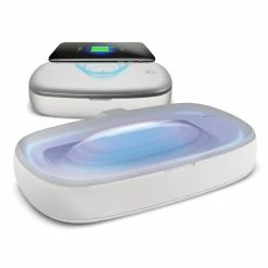 This easy-to-use sanitizing box is the perfect way to keep your phone, germ free, and your battery full, all with one device. The compact sanitizing box design keeps you safe from UV-C rays and fits many small contaminated household items such as keys, remote controls, earbuds, and more, destroying bacteria DNA. The Qi-certified charging pad enables you to wirelessly charge compatible devices (must have wireless charging capability) quickly, utilizing its 5 watt output of charging power. Simply plug in the USB cord to charge or disinfect your cell phone whenever you need to. Perfect for travel or work. The UV-C light eliminates up to 99% of the nasty and harmful germs found on our phones that constantly put us at risk for viruses and infections. This toxic free non-chemical approach is the safe and ideal way to keep your frequently touched items, clean. The device is powered by a built-in rechargeable battery, that recharges via micro USB. The light output ranges from 2mw-4mw.