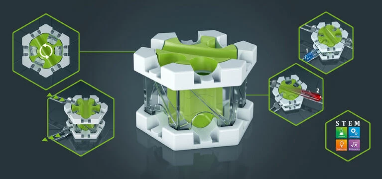 Marbles can roll across the top level or drop down to paths waiting below. Change the direction of the marbles for more racing fun. Compatible with all GraviTrax productsGravitrax is a modular, electronic-free interactive track system where you can design and build your own marble runs. This STEM toy for boys and girls 8 and up, encourages experimenting with gravity, magnetism, and kinetics to propel your marble to the finish. Designed with open play in mind, the concept offers endless possibilities to design a different track every time you play. Expand your builds and add some action with a variety of expansion sets and accessories.