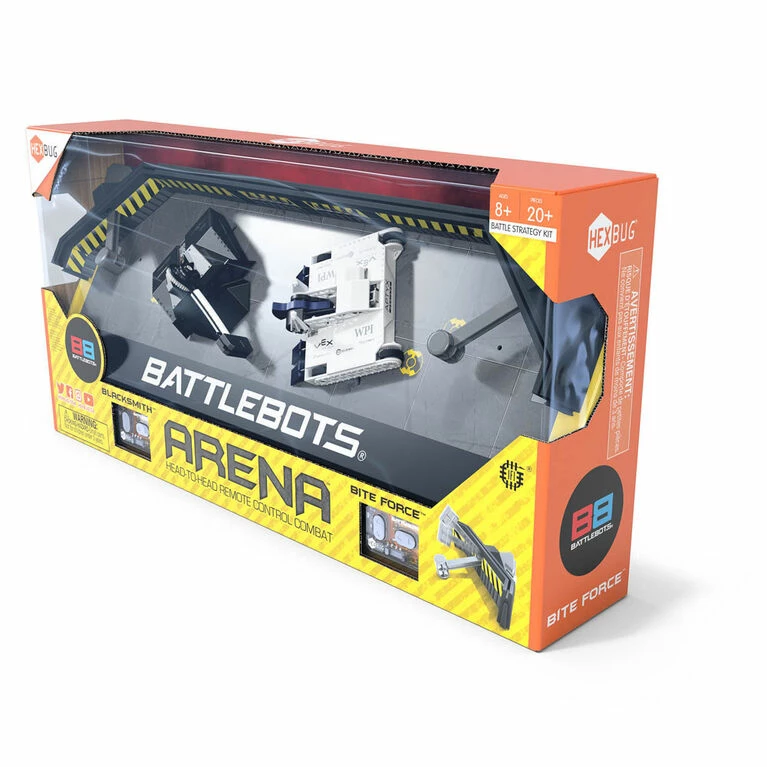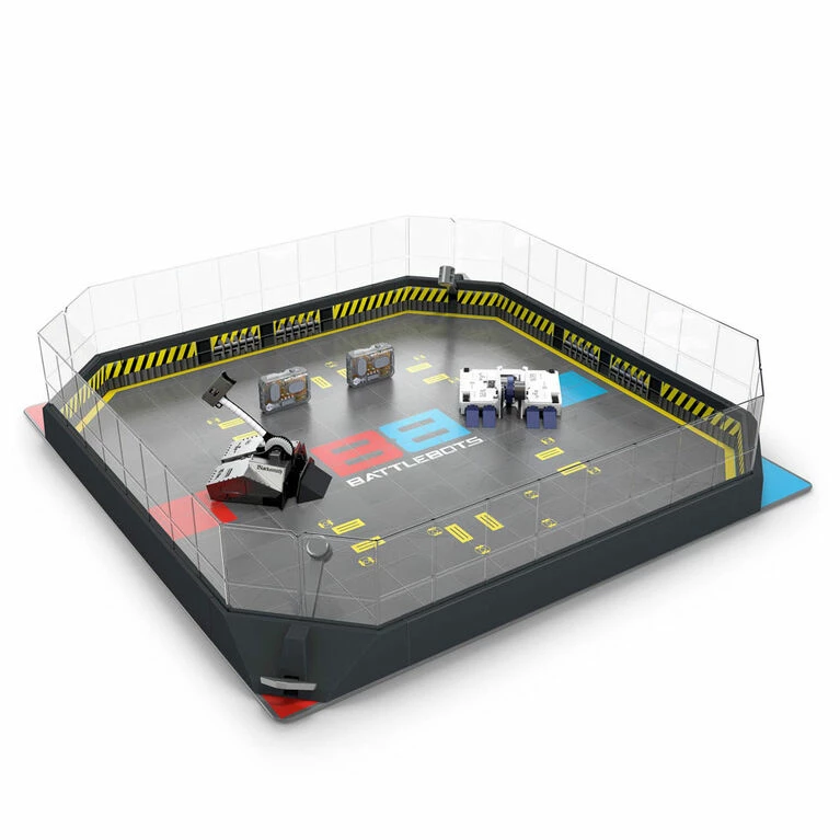 Suit up your BattleBots for an action-packed match with the new Arena 4.0! Push your enemies into two corners of the arena to knock off their weapons with the interactive hammers. BattleBots fans can experience the excitement that comes with engineering your very own fight. This set includes the reigning champion BITE FORCE and its challenger Blacksmith! Come up with your own strategy to beat the champ!