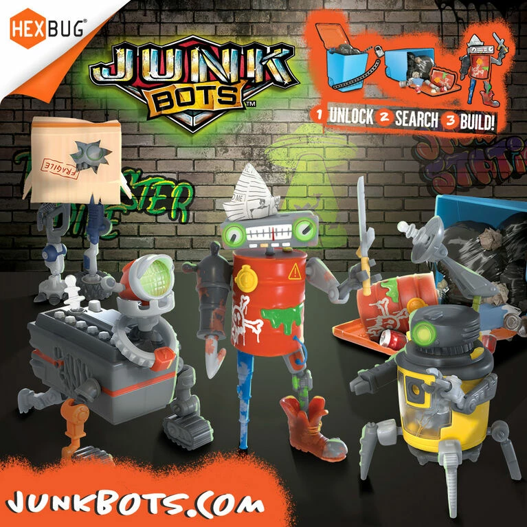Junk Bots are part of a collectible unboxing experience. Open up your trash can and see what treasures you have inside! In season one, there are over 36 unique hero robots that can be taken apart and combined with other Junk Bots to create totally unique figures. Whether you want to gather static figures, bots that vibrate with a rumble unit, bots that light up with an energy core, or bots that come to life with a motion pack, there is something for every collector.