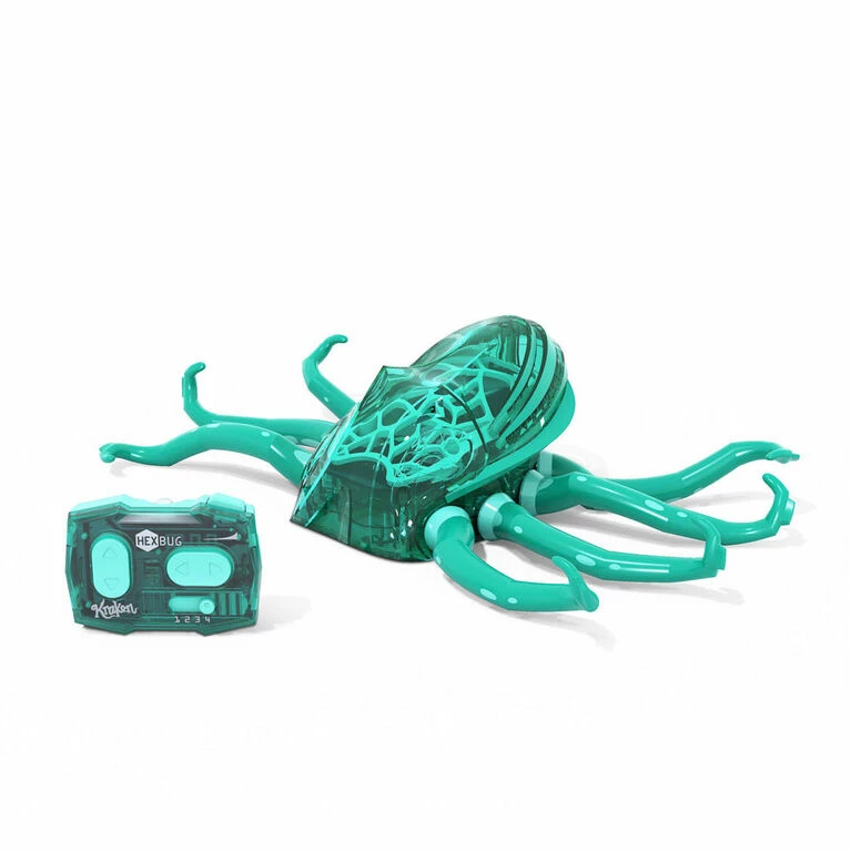 From the darkest depths of the ocean blue comes the HEXBUG Kraken! Legends of this mysterious creature report that this mechanical cephalopod has eight rubber legs that flop around to carry it towards its next target. One powerful tool tames the creature and gives you the power to control it – an IR remote that commands its every move! With lifelike crawling motion, the Kraken is sure to intimidate any being unlucky enough to encounter it.