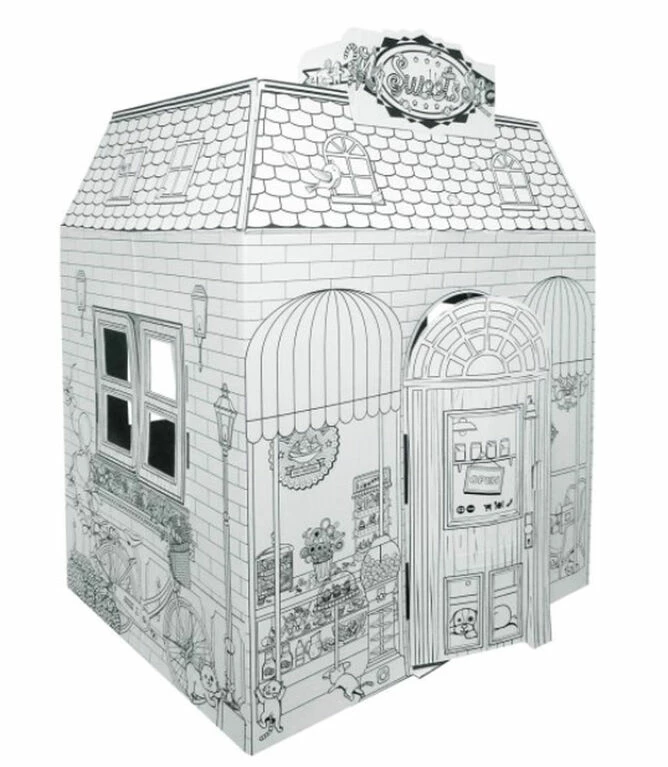 This Paper Sweet Shop is an ideal gift for children. Most suitable for children aged 3 or older to play. The Sweet Shop internal space is large enough to accommodate a 3-6 year old child. Its surface is printed with beautiful images that allow children to color themselves and create their very own Sweet Shop. The whole cardboard piece is very easy to assemble.