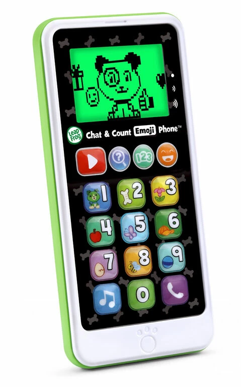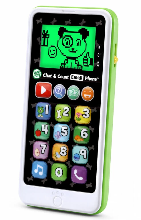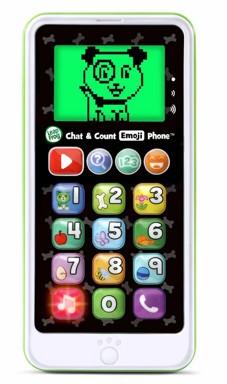 Say hello to Scout on the Chat & Count Emoji Phone! Similar to a smart phone, but built just for toddlers, this toy phone lets children call Scout, have playful conversations and receive pretend phone calls and voicemail messages. Explore numbers 0-10 with animations featuring a bunch of objects to count. Kids can even watch cute videos featuring Scout, and add emojis just like on social media sites. Dial up the exciting pretend play.
