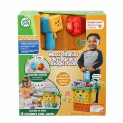 Y’all “bready” for this? Let’s shop with the Count-Along Basket & Scannerâ„¢ featuring play food, shopping lists, and an interactive scanner that recognizes each food piece. Carry the shopping basket or expand it into a rolling shopping cart. Shop the rainbow with eight play foods in a variety of food groups, colors, shapes and numbers. The fish, carrots, strawberries, cake, bread, broccoli and grapes show off their silly personalities with music and unique phrases when scanned. Ready for a veggie dance? Let’s “brocc” and roll! Scan foods on the shopping lists to play activities like Food Group Feast and Shapes of the Day to hear encouraging phrases and songs. Three interactive play modes reinforce learning. In Learn mode, scan a food to find out its name, color and the number printed on it. Switch to Count mode to follow the scanner’s directions to scan foods up to ten times. Ready to play a game? The scanner gives clues for foods by name, number, color and shape in Game mode. Play pieces store in the basket. Intended for ages 2+ years. Requires 2 AAA batteries. Batteries included for demo purposes only. New batteries recommended for regular use.