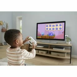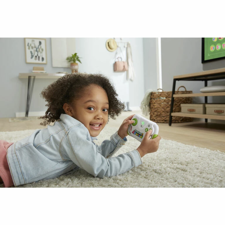 The LeapLanders are getting ready to celebrate the Gem Festival, but the keys to Clever Castle are missing! Go on a quest as you play the LeapLand Adventures learning video game. Hunt for keys to unlock the castle and learn about letters, numbers, shapes and colors along the way. Insert the plug-and-play HDMI game stick and USB power cable into the television and start playing the video game immediately using the wireless controller. No web connection, downloads or account setup required! Choose between two characters and explore Letterland, Numberville, Shapetown and Color Springs. Run and jump through progressive, replayable game levels to collect gems, cleverberries and treasure chest rewards. Play the game again and again, collecting additional gems, flags and banners to decorate the castle and celebrate at the Gem Festival. Players can also explore more than 150 learning items at their own pace by playing the educational content directly in the Learning Center. Save unique game progress with up to five player profiles. Intended for ages 3+ years. Requires 2 AA batteries. Batteries not included.