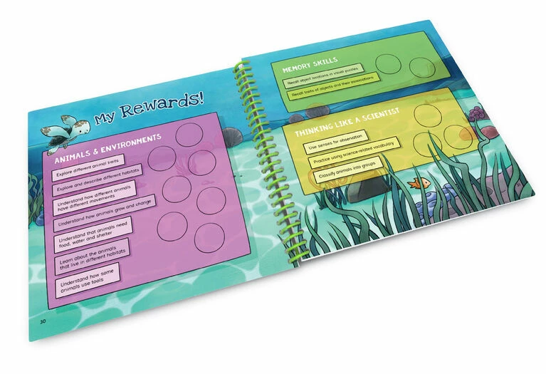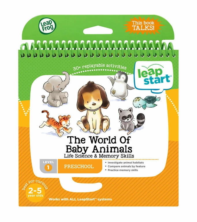 Learn all about your favorite baby animals with The World of Baby Animals Activity Book for the LeapStart Interactive Learning System. Discover an elephant’s trunk, a bird’s beak and other unique traits and cool tools that make each animal special by touching the stylus to the page. Explore the animals’ habitats from the ocean with turtles to the jungle with tigers. As you play, you can explore more difficult activities to learn even more. Complete 30 interactive, leveled games and replayable activities including matching and memory games to add stickers on your My Rewards page.