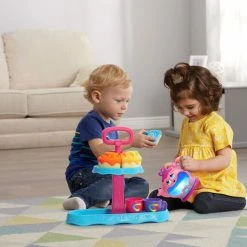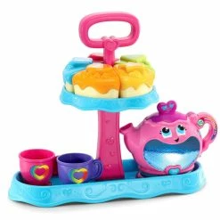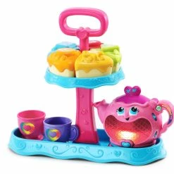 Invite friends to a magical tea party with the Musical Rainbow Tea Party! This nine-piece set includes everything needed for tea for two. Choose a tea flavor and pretend to pour the tea into the cups while the teapot magically empties. Press the heart button and the teapot will ask for a piece of cake while introducing colors, shapes, numbers and sharing.