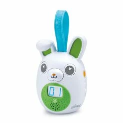 The On-the-Go Story Pal player lets kids take story time wherever they go! Spark imagination through 70+ stories, poems, songs and lullabies. The narrators, character voices, sound effects and content encourage listening comprehension and build a foundation for a love of storytelling. This adorable, bunny-shaped player has easy-to-navigate controls and a headphone jack so kids can listen anywhere (headphones not included). Personalize the On-the-Go Story Pal by recording up to 10 minutes of your voice reading your child’s favorite story or create your own. Create a playlist of up to five stories, songs, poems or lullabies. A timer allows you to select a variety of stories, songs and lullabies to be played before the player shuts off. Easy-to-navigate controls make it kid-friendly and simple to use. Includes a carrying strap so kids can bring the player anywhere they want to go. Free additional content is available for download and features four packs of additional stories and music. Play happily ever after! Intended for ages 3+ years. Requires 3 AA batteries. Batteries included for demo purposes only. New batteries recommended for regular use.