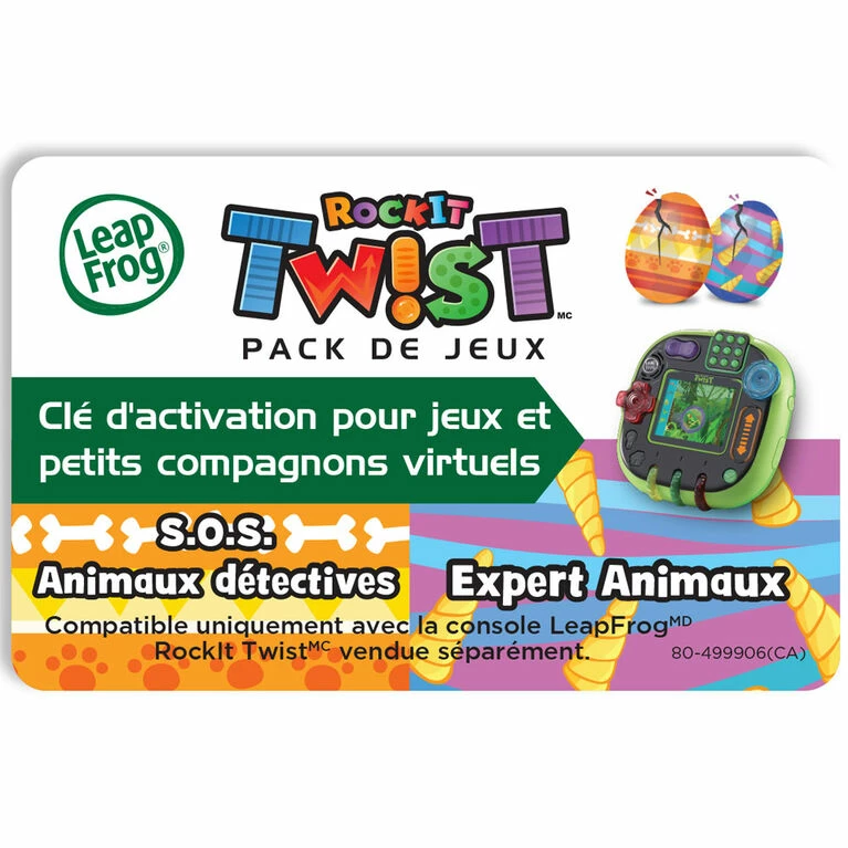 Double the fun with the RockIt Twist 2 Pack: Penelope Penguin: Pet Detective and Animals, Animals, Animals. Go on cases, collect clues, solve mysteries and more in the Penelope Penguin: Pet Detective game pack. Explore the animal kingdom, search for creatures, test your animal knowledge and more in the Animals, Animals, Animals game pack. The game pack also includes two virtual RockIt Pets, a dog named Barkham and a narwhal named Coral, as well as Barkham and Coral figures to match. Play games featuring the virtual pets and grow them through different stages. Intended for ages 4-8 years. A computer with an internet connection is required to use the included activation keys and install the game packs onto the RockIt Twist system. Game packs can be installed on up to five RockIt Twist systems registered to the same parent account.