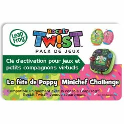 Double the fun with the RockIt Twist 2 Pack: Trolls Party Time With Poppy and Cookie’s Sweet Treats. Play in the Trolls world and help Poppy plan a sweet party in the Party Time With Poppy game pack. Make delicious recipes and stir, weigh, chop and more as you bake in the Cookie’s Sweet Treats game pack. The game pack also includes two virtual RockIt Pets, a flower named Ashley and a doughnut names Sprinkles, as well as Ashley and Sprinkles figures to match. Play games featuring the virtual pets and grow them through different stages. Intended for ages 4-8 years. A computer with an internet connection is required to use the included activation keys and install the game packs onto the RockIt Twist system. Game packs can be installed on up to five RockIt Twist systems registered to the same parent account.