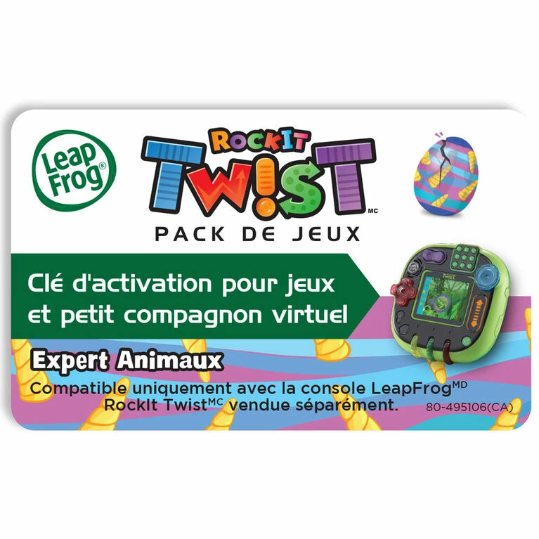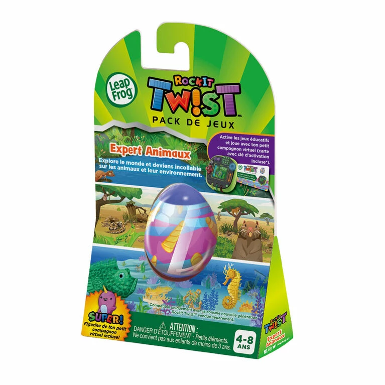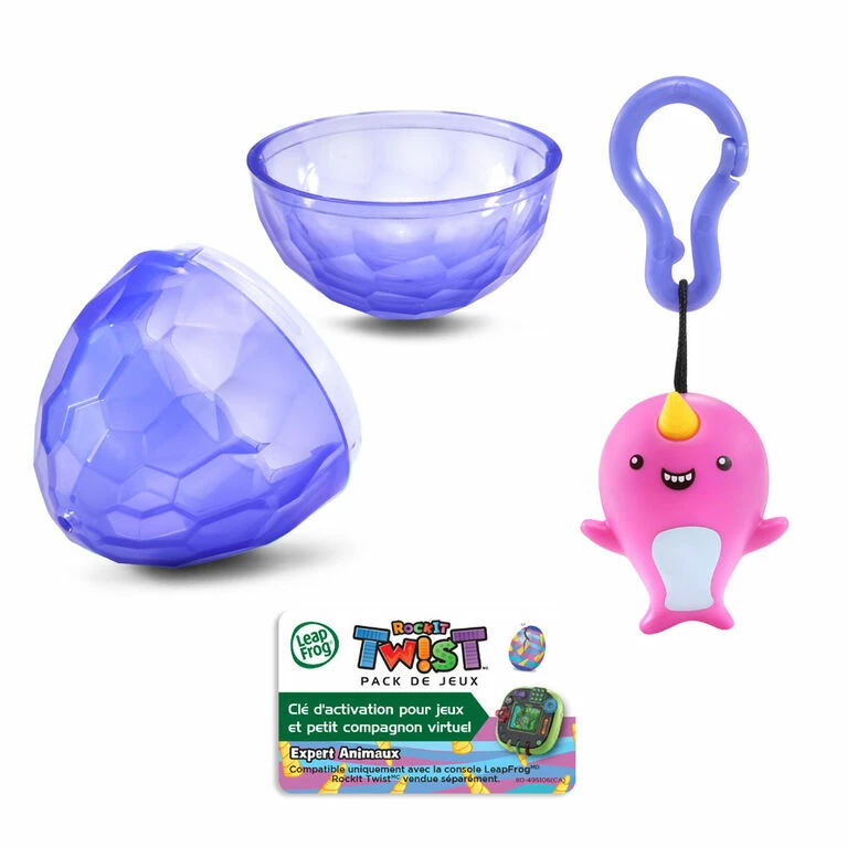 Explore the animal kingdom in the Animals, Animals, Animals game pack for the RockIt Twist system (sold separately). Search for creatures, test your animal knowledge and more using the light-up controls on the four-sided RockIt Twist system. Games focus on animals and their habitats. The game pack also includes a virtual RockIt Pet narwhal named Coral with a Coral figure to match. Grow Coral through four different stages by playing nurturing games with her including an ocean cleaning game. Intended for ages 4-8 years. A computer with an internet connection is required to use the included activation key and install the game pack onto the RockIt Twist system. Game pack can be installed on up to five RockIt Twist systems registered to the same parent account.