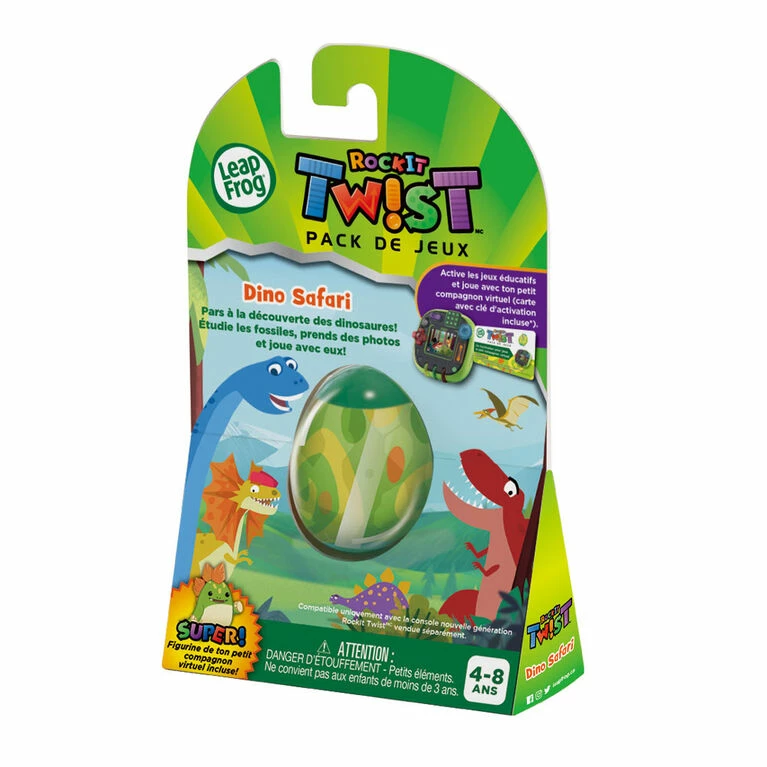 Dig into the pre-historic world in the Dinosaur Discoveries game pack for the RockIt Twist system (sold separately). Find fossils, take photos on a dino safari or play a dino running game using the light-up controls on the four-sided RockIt Twist system. Games focus on measuring and charts. The game pack also includes a virtual RockIt Pet dinosaur named Sprout with a Sprout figure to match. Grow Sprout through four different stages, then play games with him including a ping-pong game. Intended for ages 4-8 years. A computer with an internet connection is required to use the included activation key and install the game pack onto the RockIt Twist system. Game pack can be installed on up to five RockIt Twist systems registered to the same parent account.