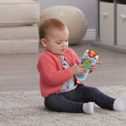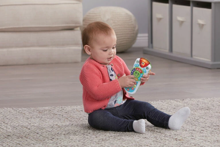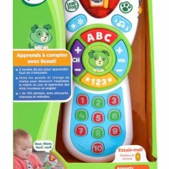 Learning is on every channel with Scout’s Learning Lights Remote Deluxe role-play toy. Explore all 17 buttons on the learning remote to hear more than 100 phrases, sounds and music while building fine motor skills. Flip between modes for role-play excitement or learning activities that introduce numbers and letters. Silly pretend channels inspire imaginative play. Switch to the English channel to hear common English phrases, listen and dance to three different music styles on the music channel and hear rain, snow and wind sound effects on the weather channel. Intended for ages 6+ months. Requires three AAA batteries. Batteries included for demo purposes only, new batteries recommended for regular use.