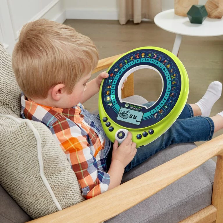 Meet Sparky the phonics firefly! Zip around the ring and this friendly little bug will light up each letter to introduce letters, letter sounds, spelling and animals. Delightful animations of Sparky and the animals accompany each discovery. Sparky loves to play hide and seek! Listen to the letter and letter sound clues to find the letters Sparky is hiding behind. Finding the firefly helps build early reading skills by getting preschoolers to look for Sparky again and again. Now that you know your phonics sounds, use what you’ve learned to build whole words with Sparky’s help. Well done! Get to know Sparky’s animal friends by listening to the clues. Find the animal Sparky’s hiding with on the ring by matching the animal to its description or the sound it makes. It is an alligator astronaut! Intended for ages 3+ years. Requires 2 AA batteries. Batteries included for demo purposes only. New batteries recommended for regular use.