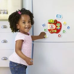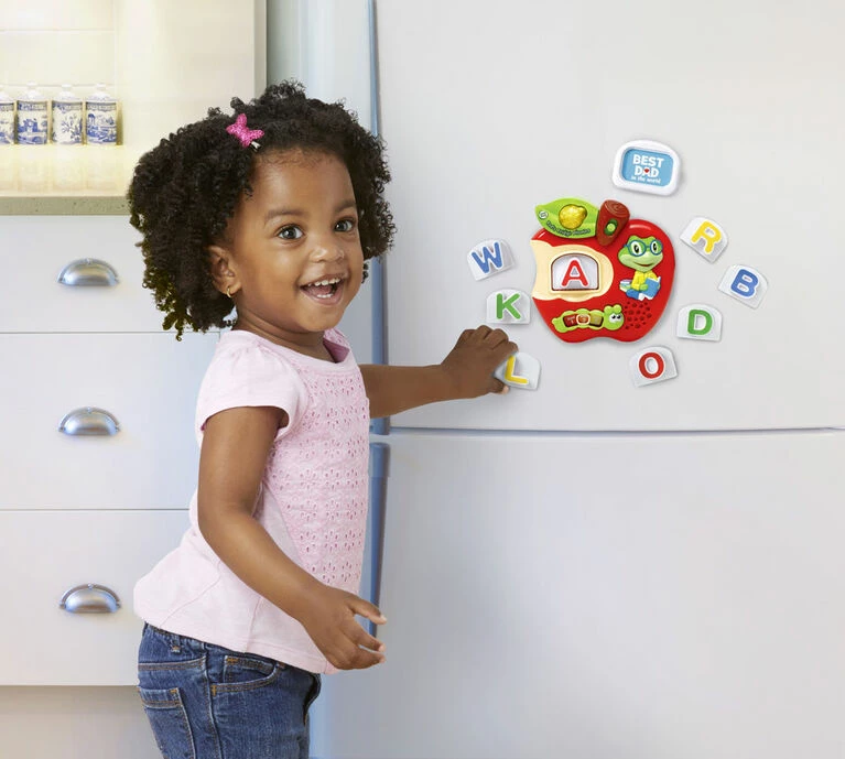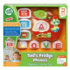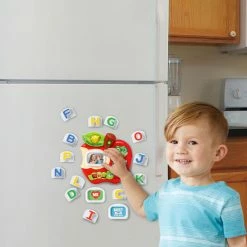Make learning the alphabet exciting with Tad’s Fridge Phonicsâ„¢! This interactive toy introduces your child to the letters of the alphabet and the sounds they make, helps build vocabulary and exercises fine motor skills. Place one of the 26 musical letter tiles into the letter slot and press down for three modes of play that reinforce letter names, phonics and word skills. Three frames can be customized with your own photos and images, for a unique, personalized play experience. With its magnetic base, it’s great for fridge play in the kitchen.