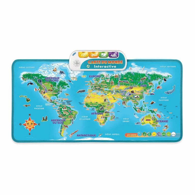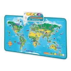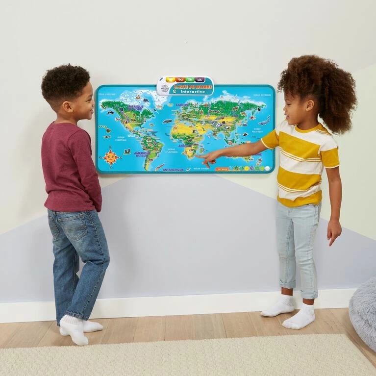 Discover the world’s continents, natural wonders, animals, and more with the Touch and Learn World Map. Hang the illustrated map on the wall and start exploring! 200 interactive touch points invite kiddos to look, touch, press and listen to learn about the world in Explore mode. 1000+ fun facts help kids find out about oceans and continents, natural wonders, countries and languages, animals and habitats, landmarks and more. When you’re ready to test your knowledge, switch to one of the three games. World Racer pits kids against the clock to find each country on the map. In Animal Quest, use clues to find animals around the world. Landmark Expedition encourages kids to search for famous sites all over the map. Bring the world to your children! Keyhole hanger included for easy wall hanging. Intended for ages 4+ years. Requires 2 AA batteries. Batteries included for demo purposes only. New batteries recommended for regular use.