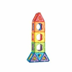 Build With 8 Rainbow Magnetic Triangles, 14 Squares, 4 Square With Inner Circle Shapes.