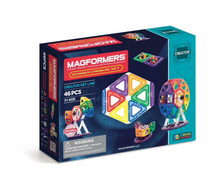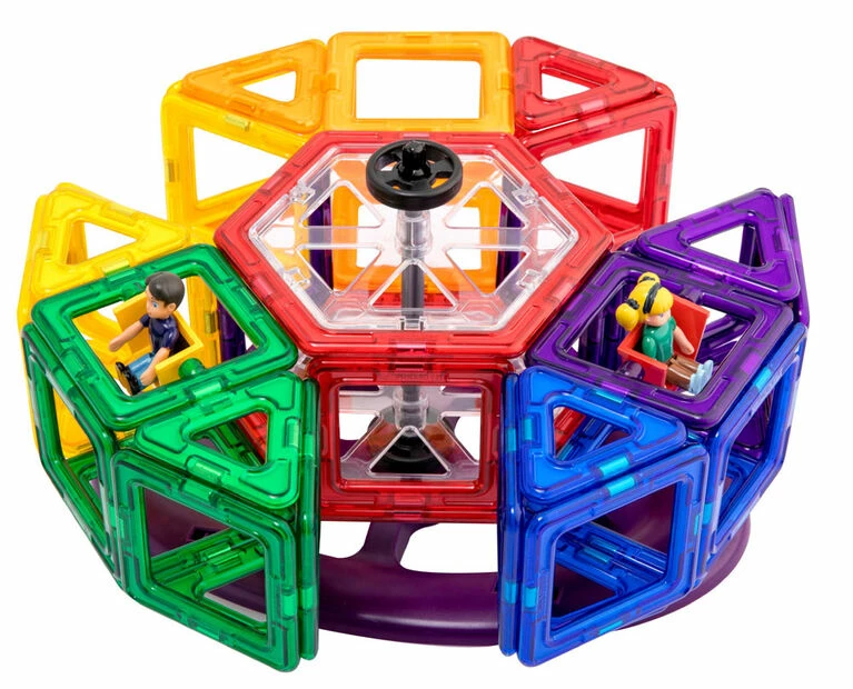 Bring your circus ideas to life and become a ringmaster with the award-winning Carnival set. Learn to build a Ferris wheel, Carousel and other great circus rides! Add accessories to your geometric shapes and design whirling, spinning creations.