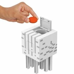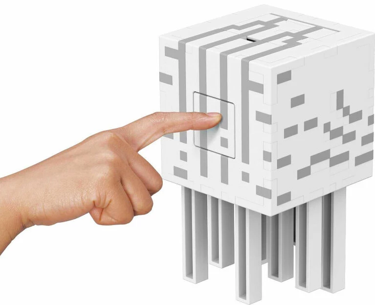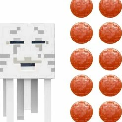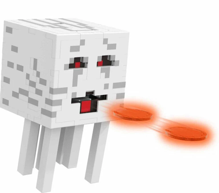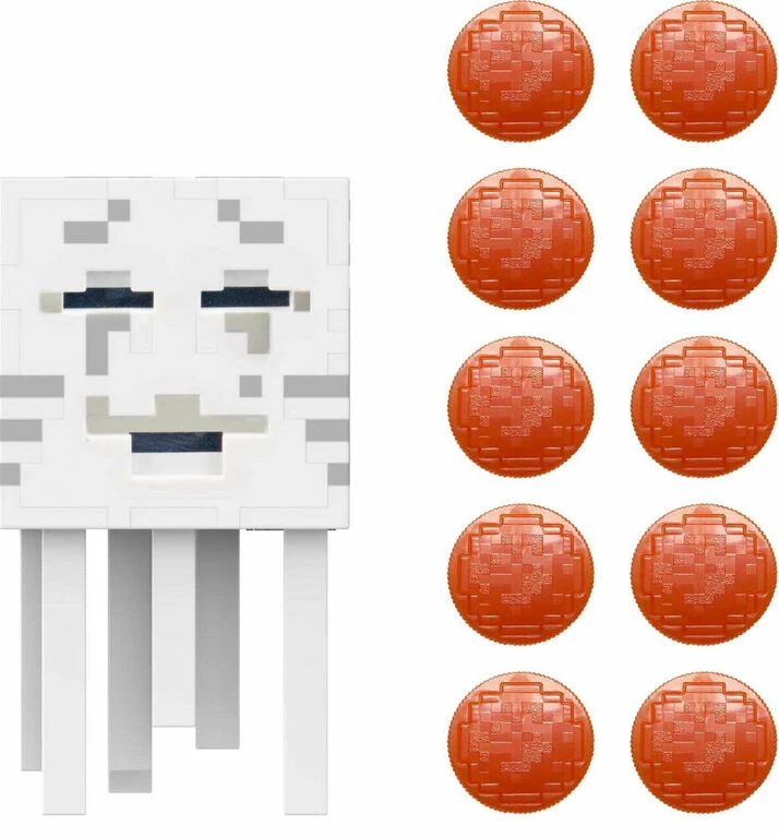 Ready, aim, fire! Load the 10 red “fireball” discs and use your hand to lift and hover the Ghast, a faithful re-creation of the eery and ghost-like hostile Minecraft mob that’s an all-time kid favorite. Players spot their prey, press the button and ZAP-the eyes change expression as the fearsome Ghast shoots a fireball disc out of its mouth! Leg dangle as Minecraft fans hold the figure and make their escape by “flying” through the Nether. Colors and decorations may vary.