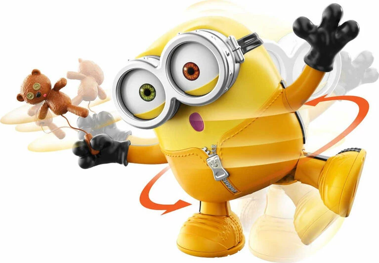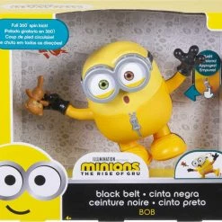 Minions Black Belt Bob is a movie-based interactive character toy with a kick! Inspired by Minions: The Rise of Gru, the origin story of the world’s most despicable super villain, this toy is an interactive Kung Fu champion of fun. Just press the zipper of this approximately 8-inch / 20-cm figure and Bob randomly busts out a side kick, a side kick with a spin or even a 360 roundhouse kick with teddy bear Tim serving as his nunchuks. The related sounds range from Kung Fu yells to unexpected farts! Because the actions are random, each movement and sound is a surprise and delight! Black Belt Bob comes with teddy bear Tim. Makes a great gift for Minions fans and collectors of all ages. Designed for kids ages 4 years and older. Colors, decorations and dimensions may vary.
