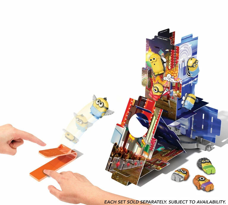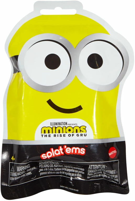 What’s squishy, sticky and totally fun? Minions’ Splat ‘Ems mini figures. Each themed surprise packet comes with a mini Minion, a launcher, a buildable card target, its holder and a sticker sheet. Send a mini-figure soaring through the air toward a target or a card hole. When the figure hits a surface, it splats and sticks. Choose multiple Splat ‘Ems mini figures from our array of Minions: The Rise of Gru themes like Construction, Kung Fu and Travel. Connect their cards and build an even larger target structure. The variety of favorite characters includes Bob, Stuart, Kevin, new Minion Otto, Dave, Phil, Jorge and even more to come. Each assortment contains a secret chase character, too. When you choose all the minis, you can create a super special collection. These compact figures are perfect for play at home and on the go. Each Splat ‘Ems pack sold separately, subject to availability. Colors, decorations and dimensions may vary.