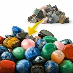 Half pound of gemstones from around the world (9 types) and four grades of grit